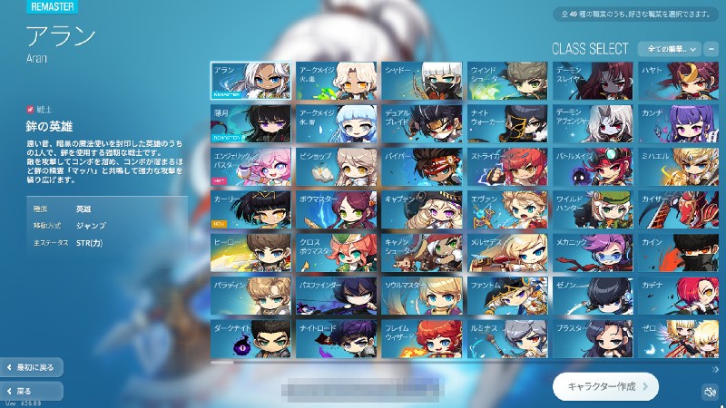 キャラクター作成画面を新たに変更し、フィルター機能などでさまざまな職業をより便利に確認・選択できるようになった。