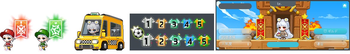 フィールドでの狩りや、最大10人のオンラインサッカーをはじめとするミニゲームに参加して、「スタンプ」や「バッジ」を集めよう。集めたスタンプとバッジは、交換所で様々なアイテムと交換することが可能となっている。