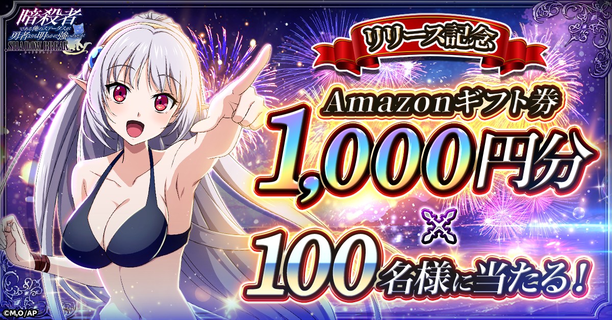 「暗殺者である俺のステータスが勇者よりも明らかに強いのだが シャドウブレイク」のリリースを記念し、公式Xにて総額10万円分のAmazonギフト券が当たるキャンペーンを開始した。