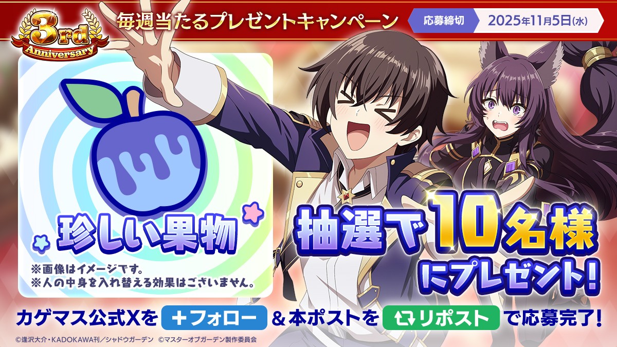 「陰の実力者になりたくて!マスターオブガーデン」は、2025年11月29日に3rd Anniversaryを迎える。