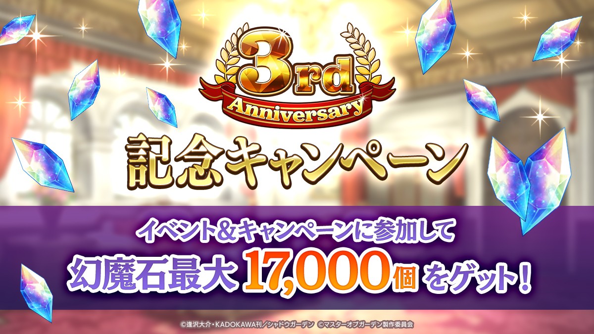 3rd Anniversaryを記念して、期間中、イベント&キャンペーンに参加すると最大17,000個の幻魔石をプレゼント。