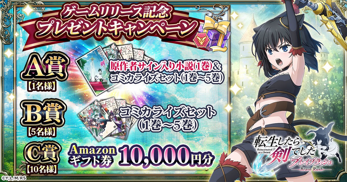リリースを記念して、公式Xにて「転生したら剣でした」の棚架ユウ先生サイン入り小説や、総額10万円分のAmazonギフト券が当たるフォロー&リポストキャンペーンを開催中。